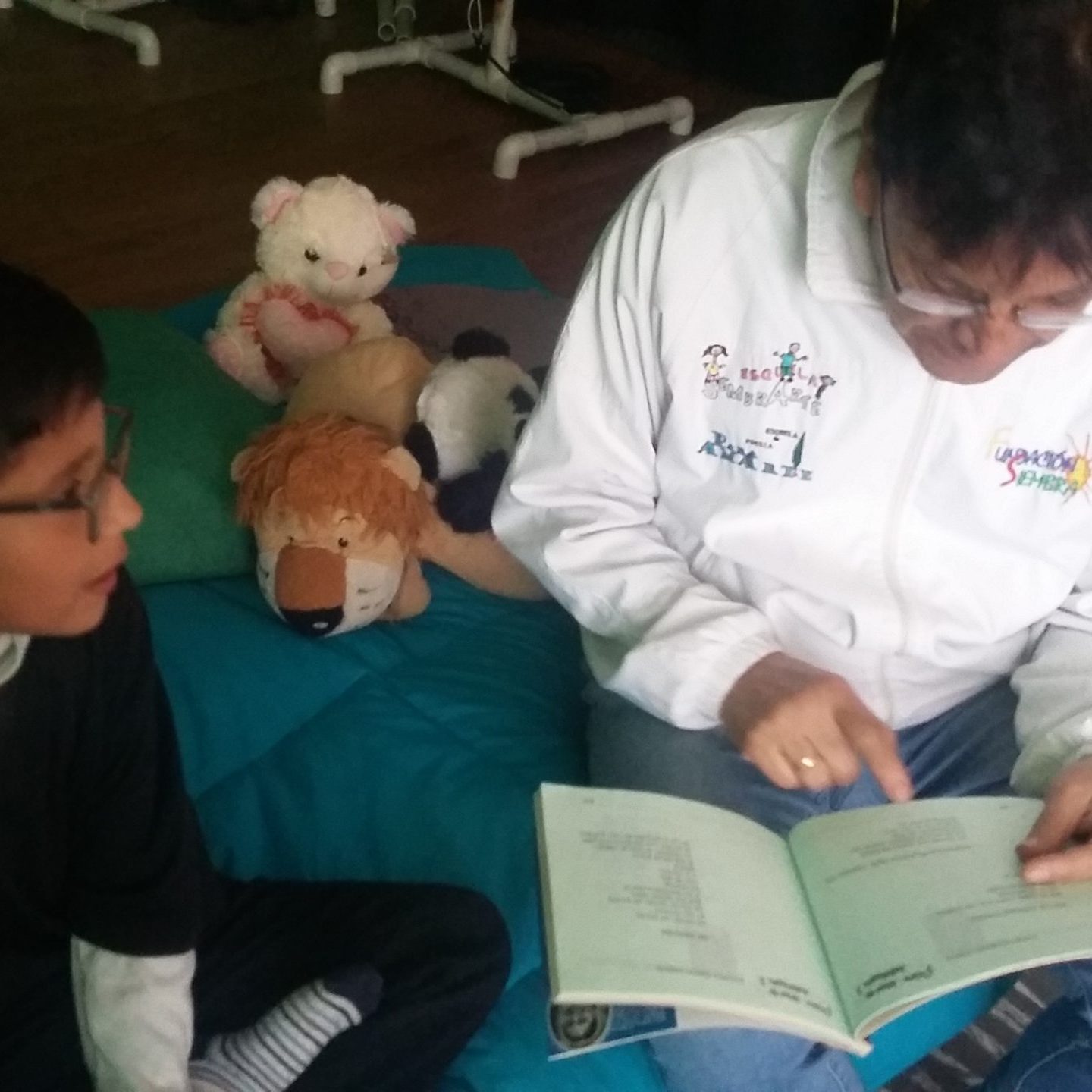 Niño estudiante transmite su saber Poético al Escritor Orador Tradicional Juan Florencio Agudelo. Proyecto Ciclo de Estudio Proceso Educativo sensible Escuela de Poesía Para Amarte 2006.
